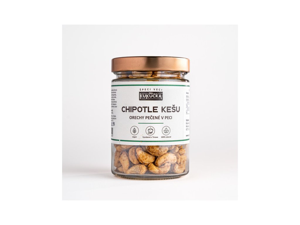 Jemne údené, príjemne štipľavé a nebezpečne návykové. Chipotle kešu sú oriešky s mexickým srdcom a slovenskou poctivosťou. Zmes jemne pražených kešu orieškov a údenej chipotle papriky ti prinesie chuť, ktorá tancuje medzi dymom a ohňom. Ak máš rád výrazné chute s iskrou – toto je tvoje nové obľúbené pokušenie.