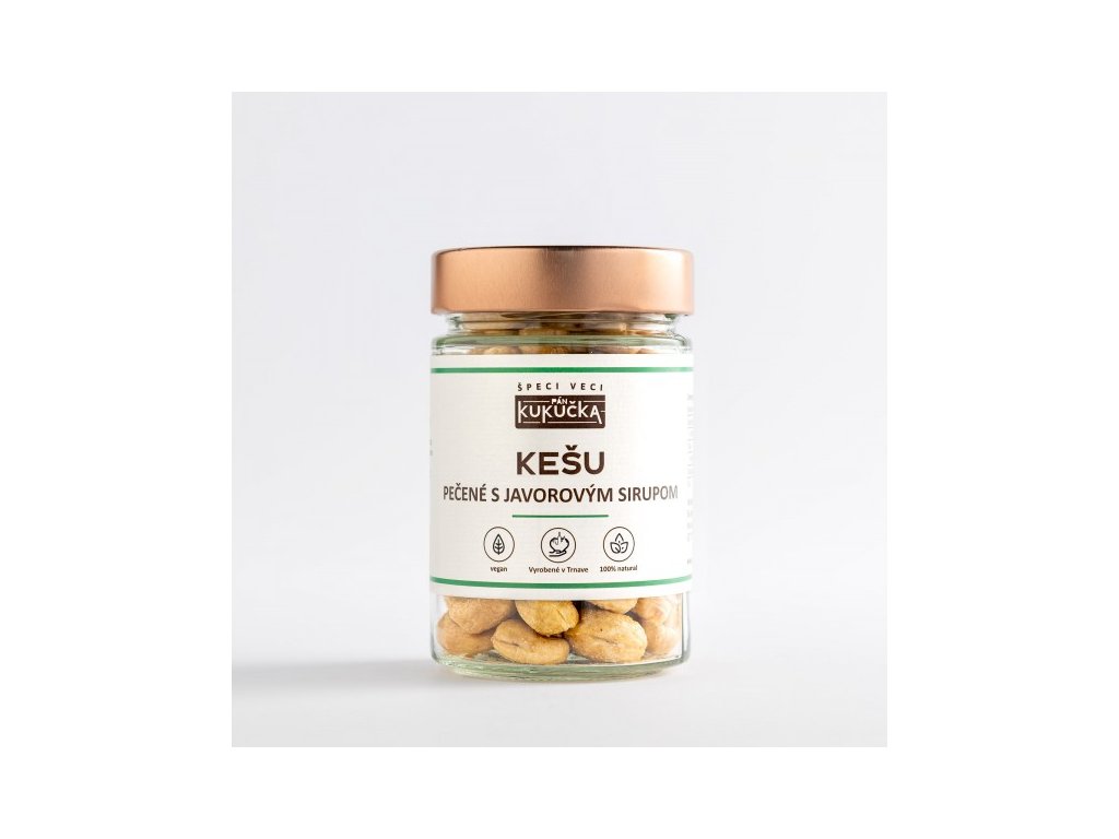 Ručne triedené kešu, pomaly pečené s javorovým sirupom. Jemne sladké, karamelové a tak nebezpečne dobré, že by si ich mal schovať aj pred sebou.