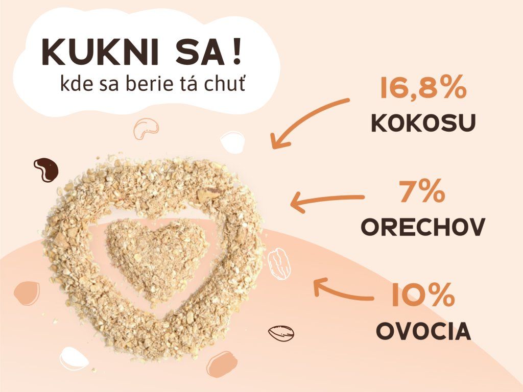 Bezlepková kaša sladená datlami s kokosom a kešu orieškami – ručne pripravená, krémová a poctivá ako domáca. Bohatá na vlákninu a zdravé tuky z orieškov.